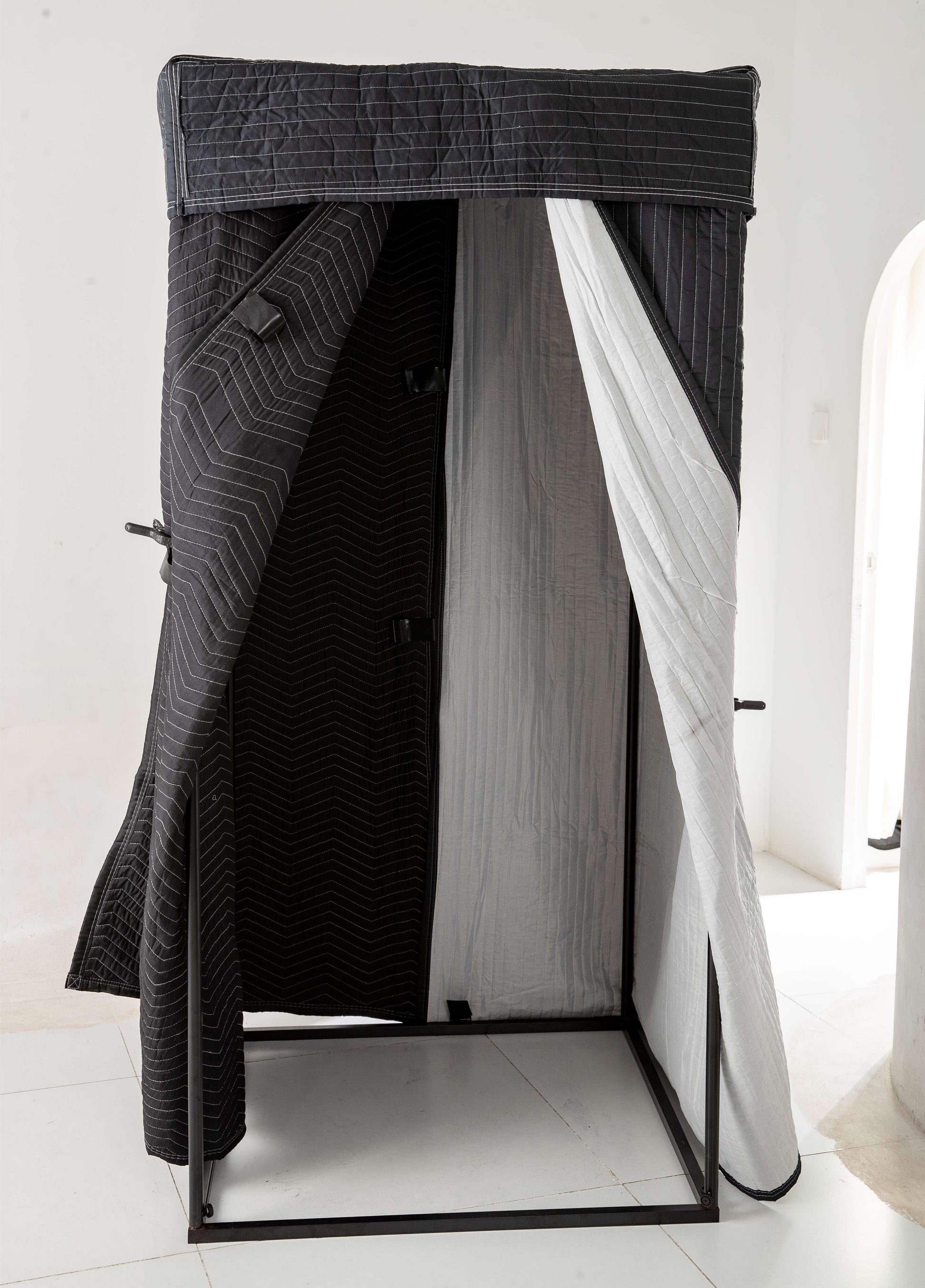 - The isolation booth is made up of a solid and lightweight metal frame with extra reinforcement bars for extra stability
