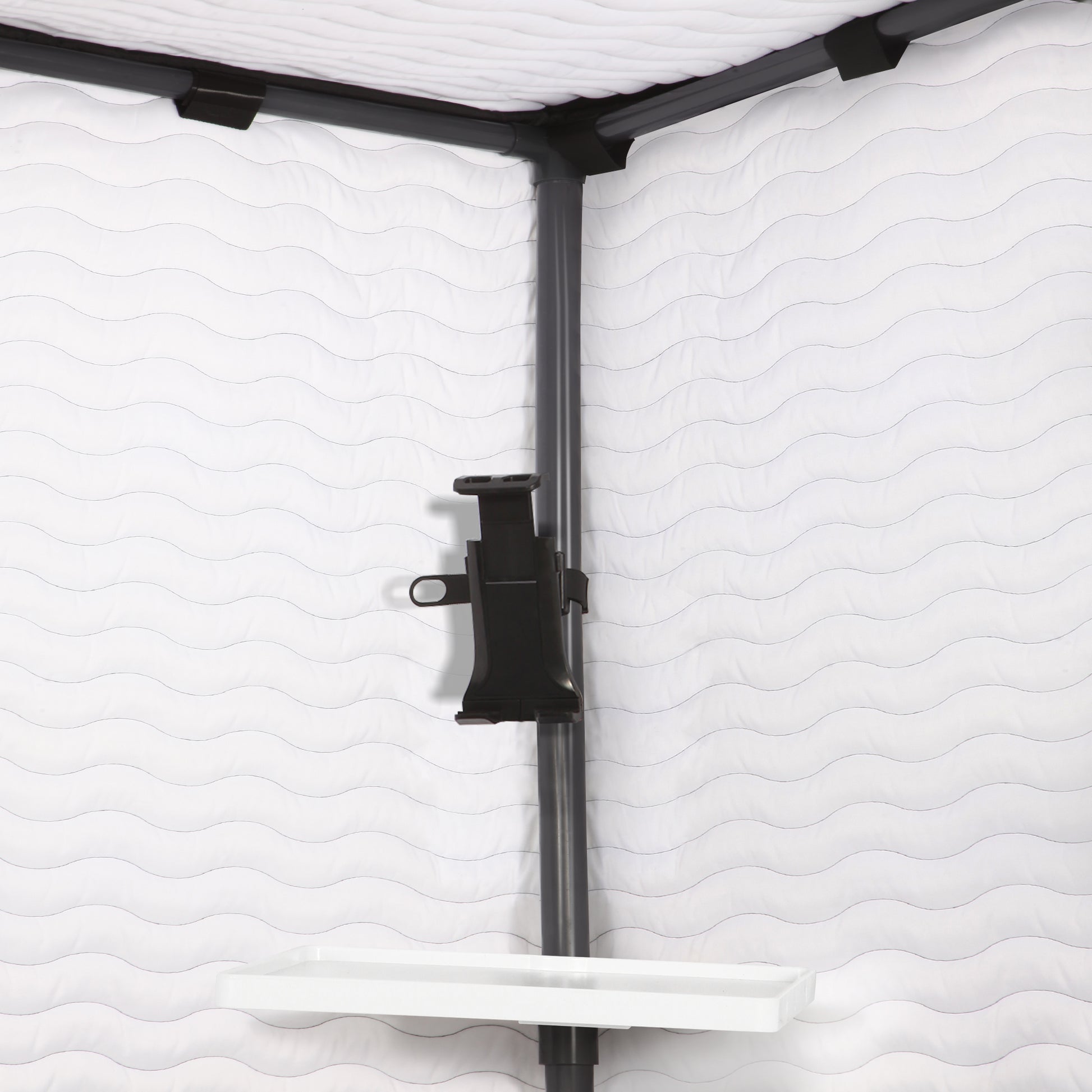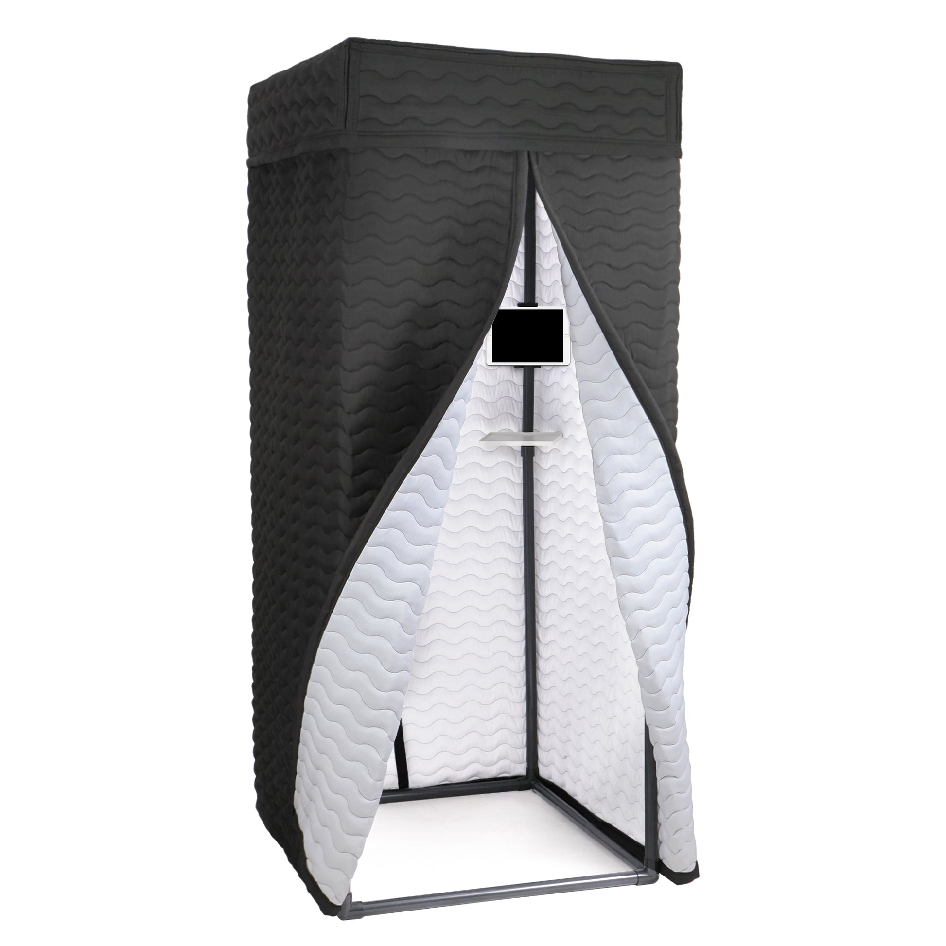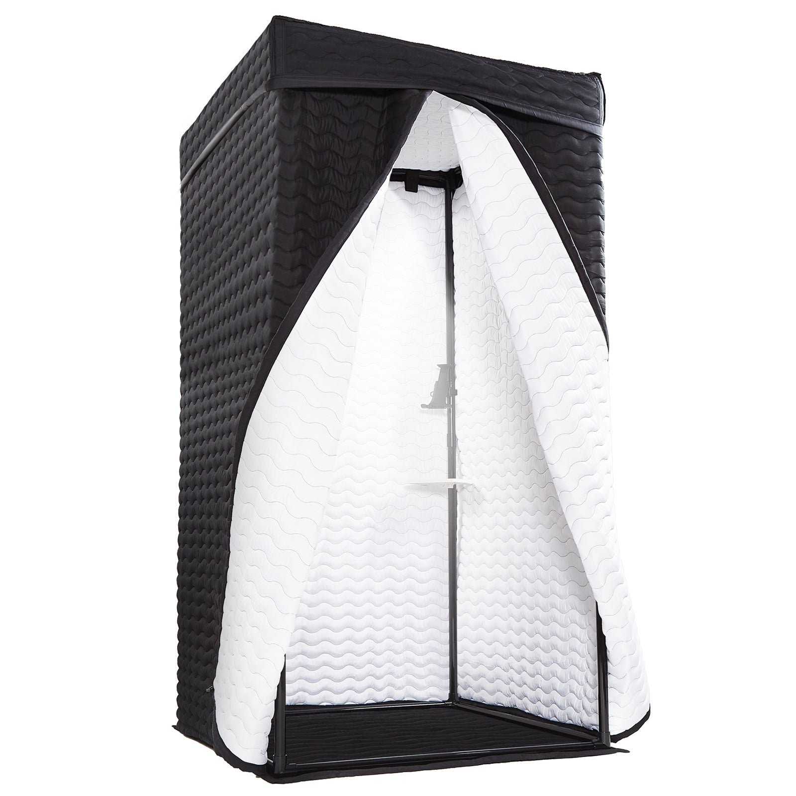Bring the studio to your space with our Studio-Quality Portable Vocal Booth. The wave-patterned design is not just for looks; it plays a crucial role in diffusing sound waves, minimizing echo, and enhancing recording clarity. The black exterior offers a professional appearance, while the white interior serves to brighten the space, aiding in visual tasks during sessions. Available in L and XL sizes, this booth is designed for easy assembly and disassembly, making it a versatile choice for artists on the move.