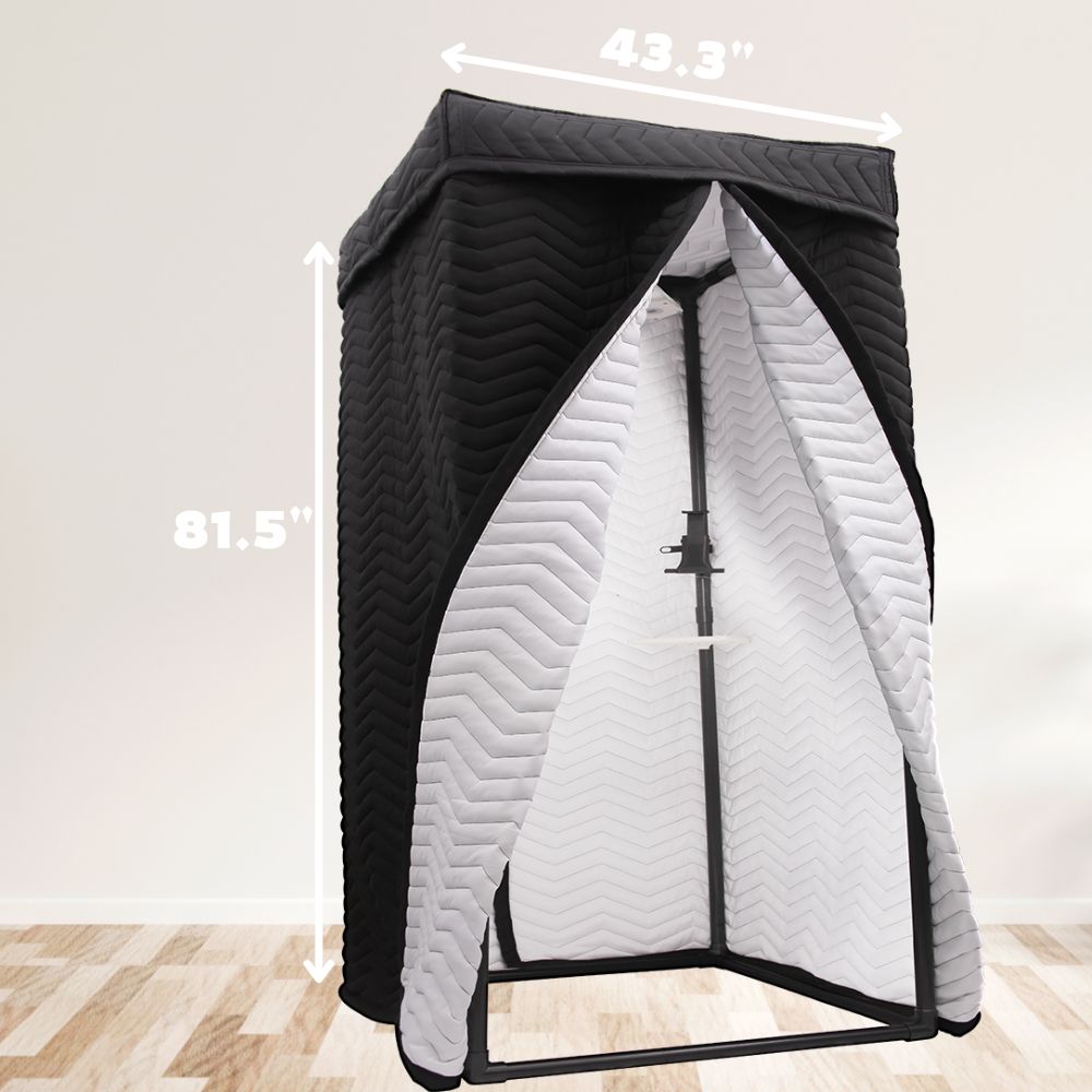 Experience superior sound isolation thanks to high-density acoustic blankets and a 360° reverb isolation shield. This portable sound recording booth dampens echoes and blocks ambient noise by up to 87%, letting you say goodbye to tinny, boxy audio and hello to crisp, dry vocals. It comes fully equipped for convenience: a sturdy yet lightweight frame, an LED light for clear visibility, a built-in tablet stand, and an equipment tray for your mic or interface. Whether you’re setting it up as a recording booth for your home studio or taking it on location as a portable sound booth for recording, this all-in-one kit has you covered.